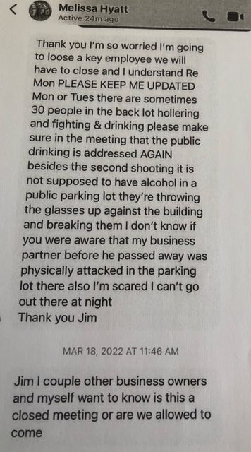 On a text from Melissa Hyatt to the Mayor on May 18, 2022, she mentions that before he passed, her partner was attacked in the parking lot. Do you have any info. or police record on this.