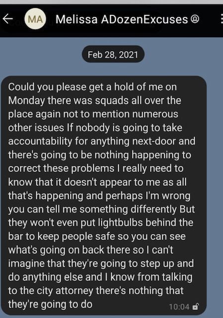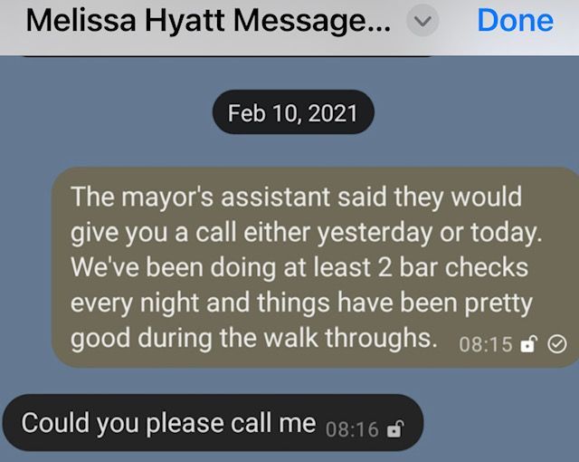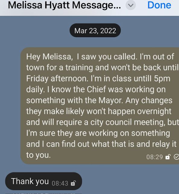 238. I want to switch gears here and bring you some news that I only found out about a few days ago. It involves Officer Jago and (good grief), Melissa Hyatt. Let me start with Officer Jago. He really was not on my radar until a few weeks ago but now he’s front and center. My first recollection, (which I covered in Blog 2, point 78 and Blog 3 point 81) of him was at that meeting in March, 2021 (the date here is very important). That is a full year before the ONLY shooting at the Palace. The focus here is Blog 3 point 81, when we spoke about Melissa Hyatt. This is an excerpt of that Blog.