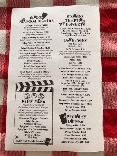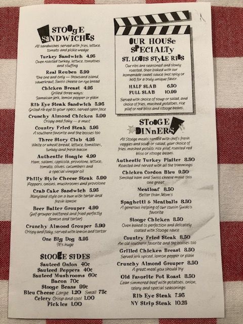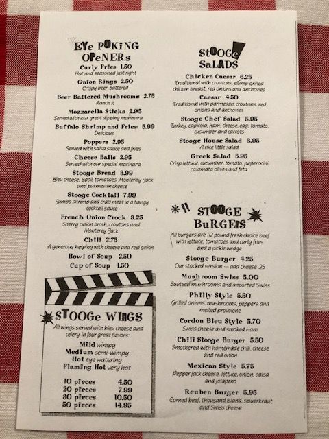 I was a big fan of the Three Stooges and had a large collection of Stooges memorabilia. So I changed the name to Stooges Eatery and turned it into a sports bar with a mini Three Stooges museum. I installed about 20 TV's showing Three Stooges shorts and sports. I also changed the menu. Check out the prices back in the mid 90’s. We were also the home of the Kansas City Chiefs. Eventually I did get my green card and sold Stooges in 1998.