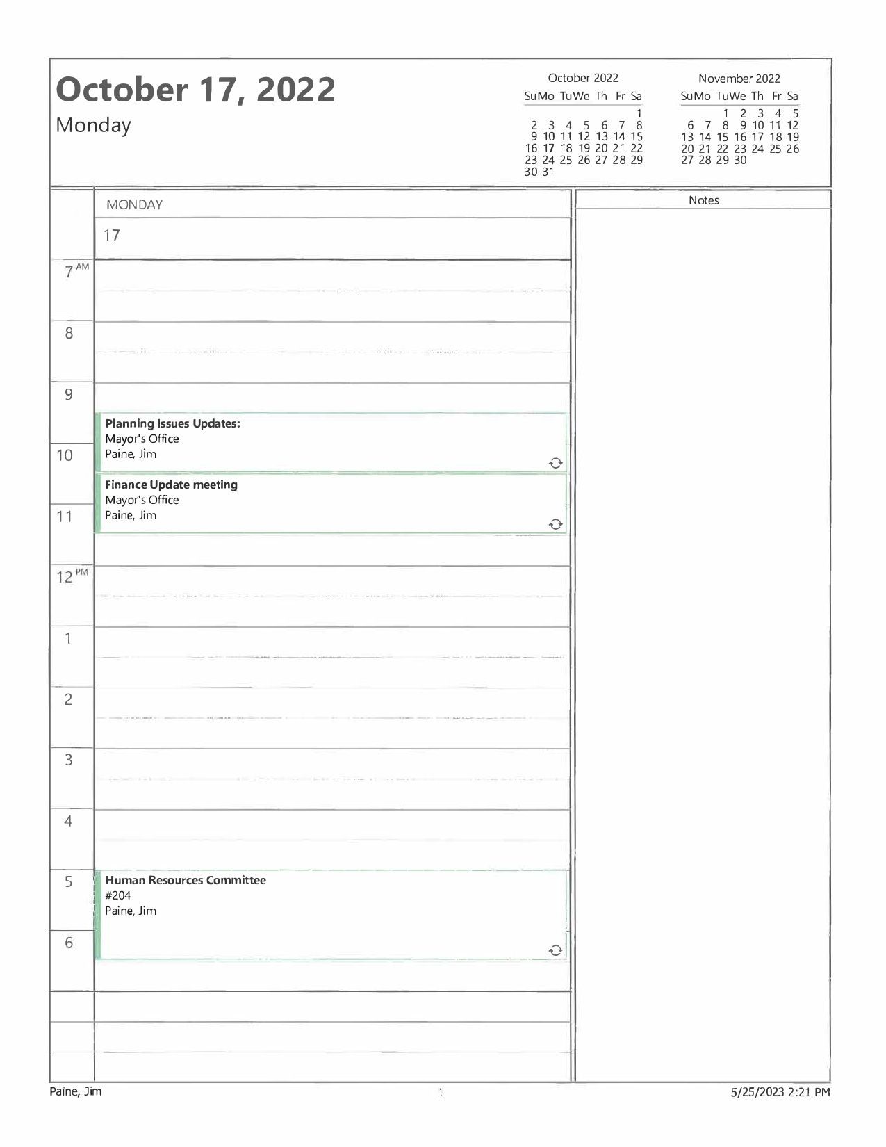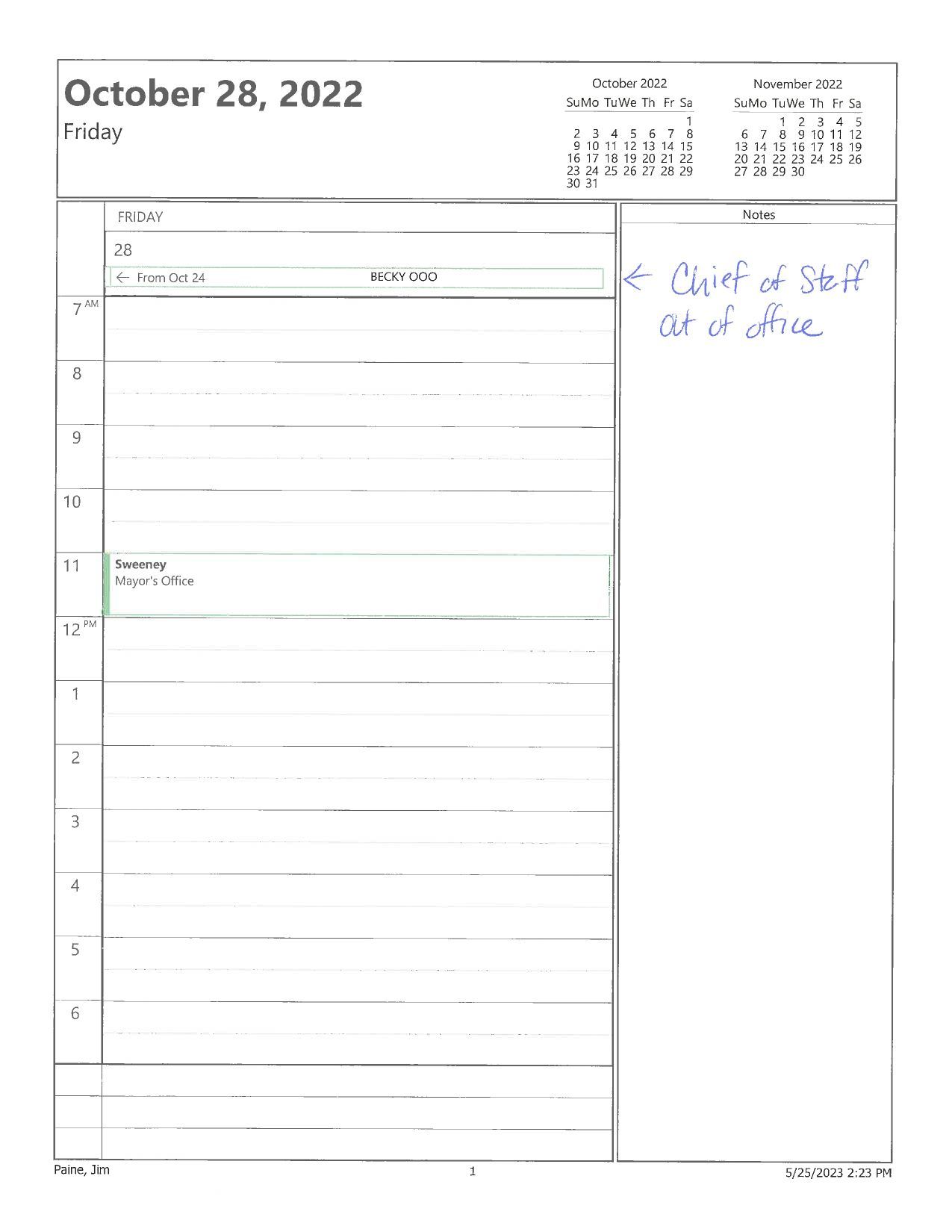 This is a data request for the Mayor's schedule for Oct 17-Oct 31, 2022