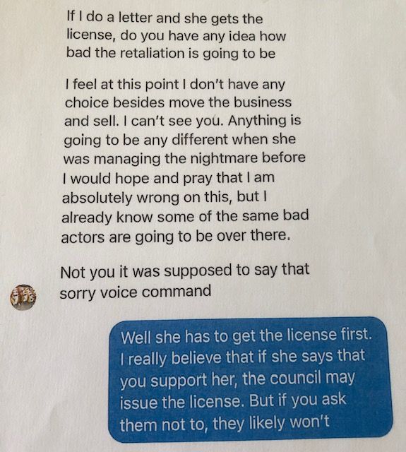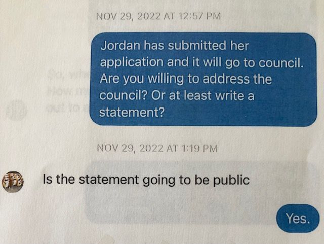 The first part of this one is interesting. I think that this is the first text thread that Sour Note Paine has started. In all the other ones I think they were all initiated by the “Donut Devil”, Melissa Hyatt. She is wondering if she gives a statement will it be public. Of course it will. All council meetings are taped. Why is she concerned? It’s because she has lied so much and she doesn't know how much we know and she is worried that she will be challenged on all her lies. But to be honest, back then we really didn’t know all the details. We didn’t get all those until 2023.